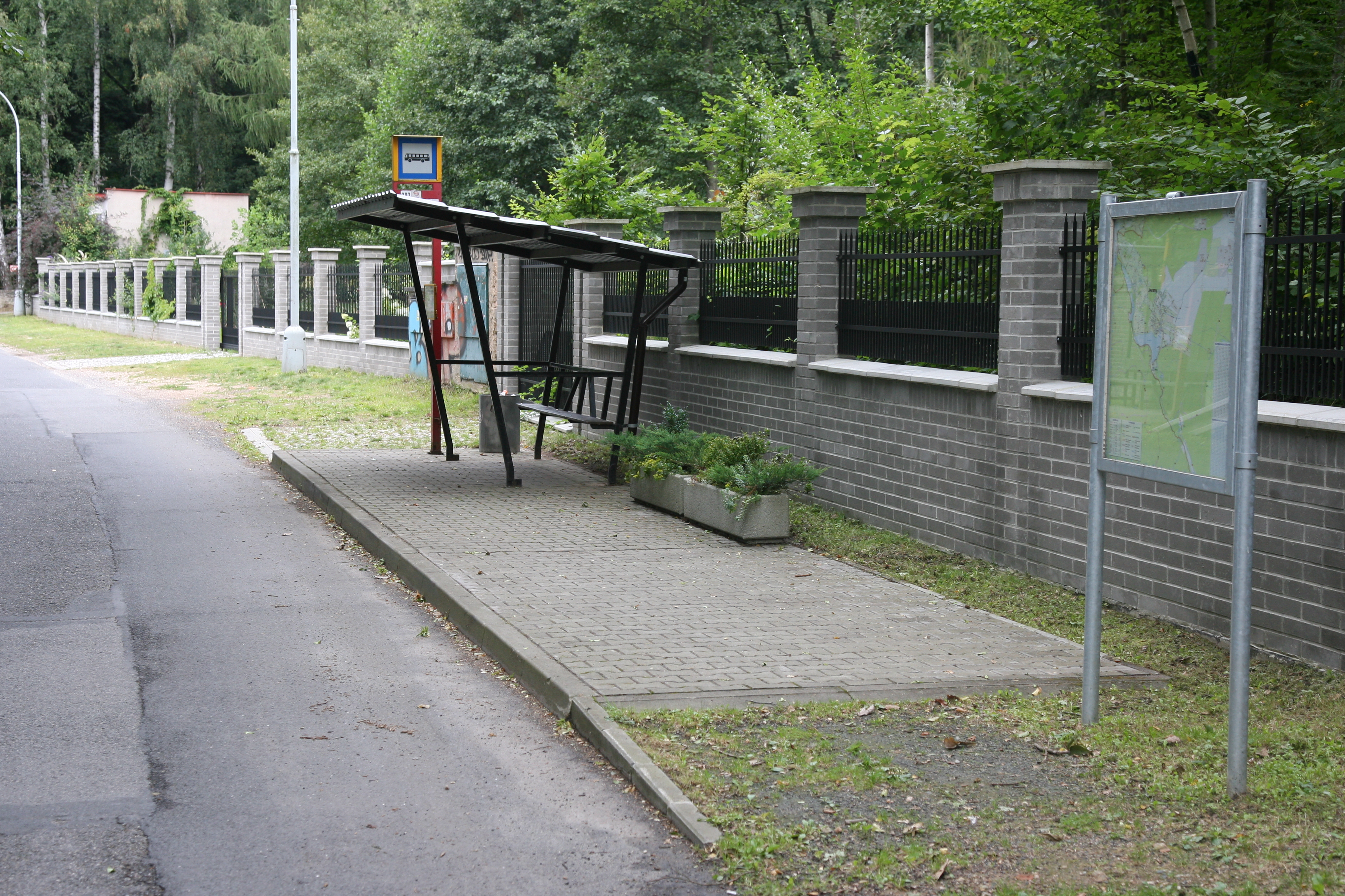 2015 : Umístění osázených betonových květináčů na autobusové zastávce Jevany, Spojovací